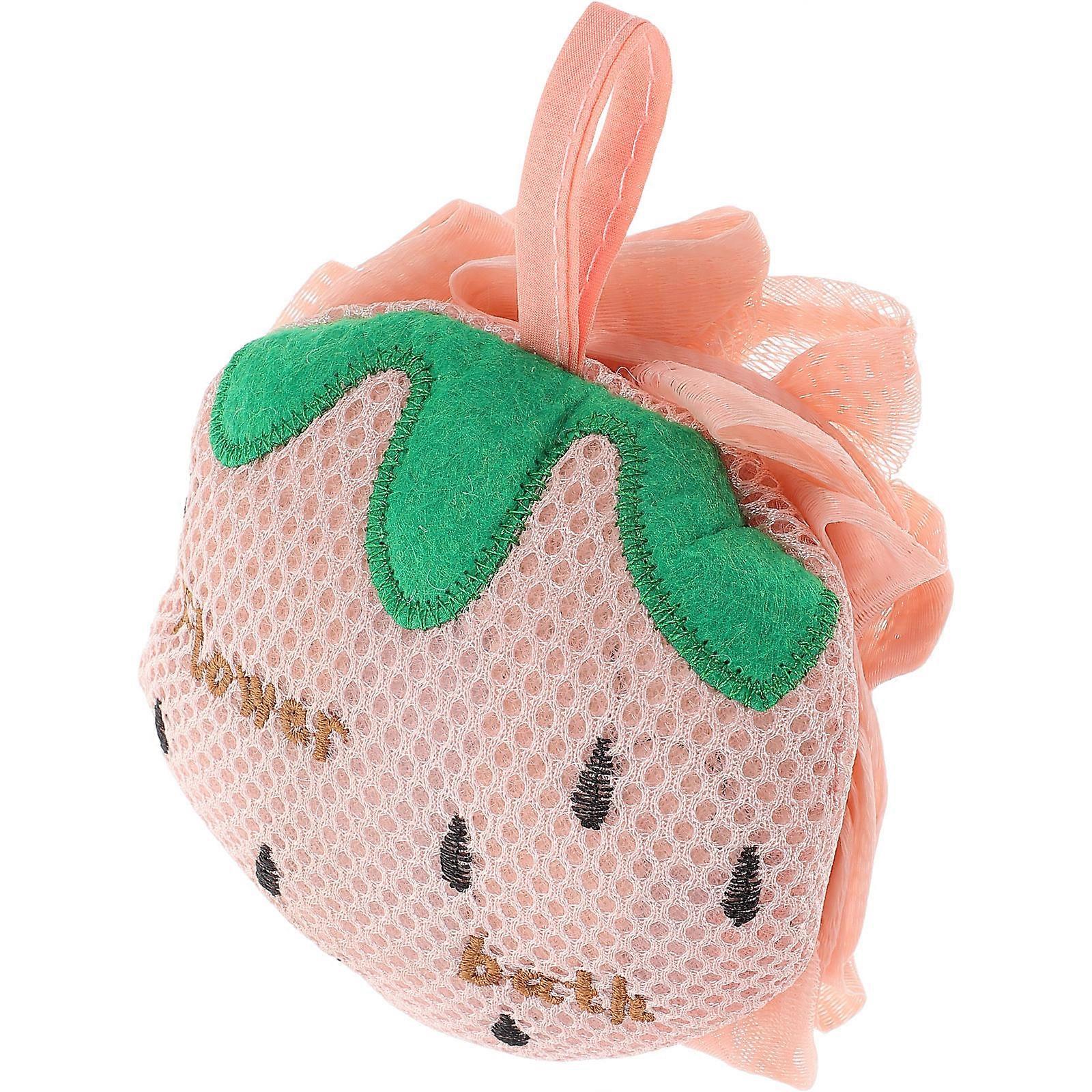 Mesh Strawberry Shower Sponge for Body Wash Pink Double Sided Pouf