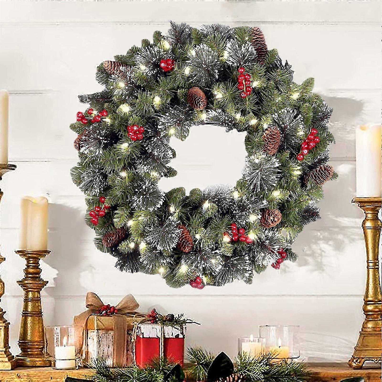 Christmas Wreath Decorations 2025,Christmas Wreaths for Front Door,Artificial Pre-Lit Christmas Wreath,Xmas Door Wreath,Grinch Christmas Decorations