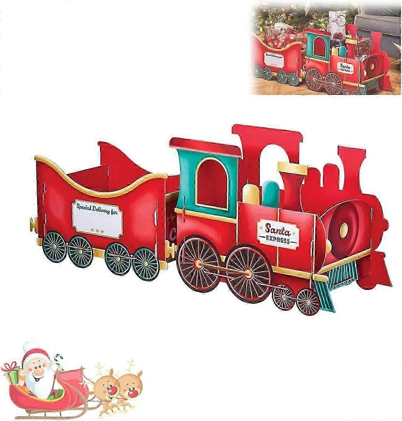 Santa Gift Train, Christmas Train Present, Whimsical Gingerbread-Style Christmas Cardboard Trains, Xmas Decoration Gifts Storage for Candy Stocking St
