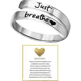 Just Breathe Ring for kvinner, Justerbar Hjertering, Rustfritt Stål Spiral Wrap Healing Ringer, Inspirerende & Hjertefølt Gave