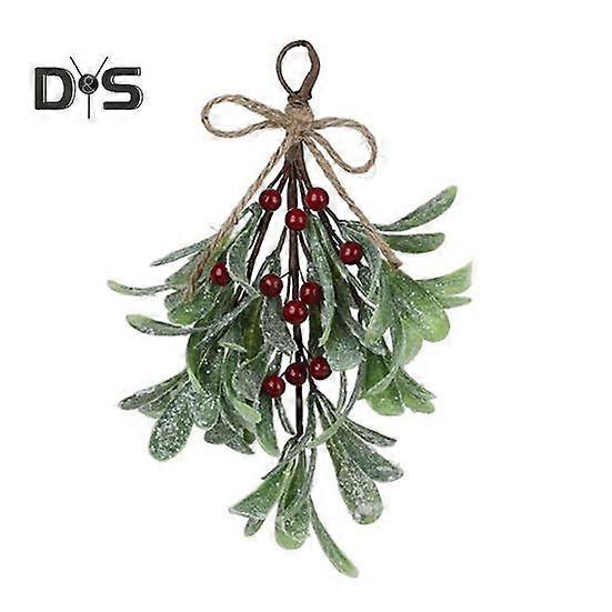 Artificial Mistletoe Branch Christmas Hanging Faux Mistletoe Ornament with Bow Glitter Leaves Simulated Mistletoe Branch for Garland Bouquet Door