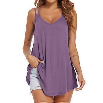 Women Double Spaghetti Strap Top V Neck Women Loose Sleeveless Blouse Top for Summer Daily Party