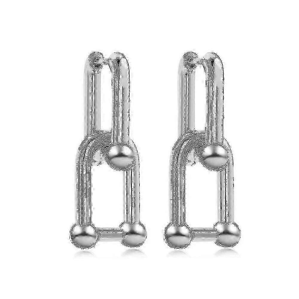 Women U-Shape Pin Link Chain Earrings Silver Gift