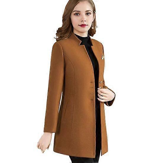 Women Winter Coat Formal Business Style Stand Collar Single-breasted Mid Length