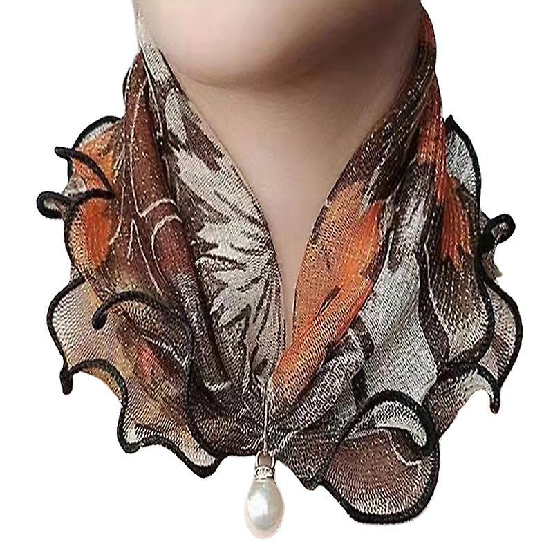 Women's Fake Collar Detachable Half Towel Mesh Scarf Pearl Scarf Bana Printed
