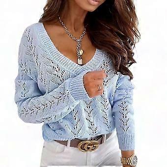 Women's Plus Size V-Neck Slim Knit Sweaters, Long Sleeve Pullover Tops for Fall Winter
