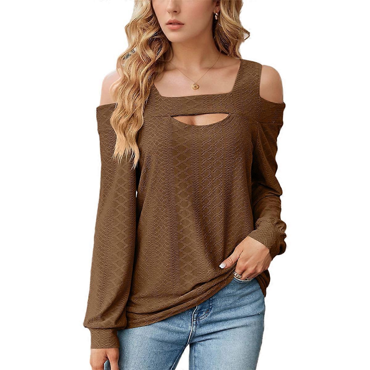 T Shirts Crafted From Premium Fabric, Soft, Breathable And Stretchy. Ladies Tops Allow You To Move Freely And Comfortably Throughout Your Day.the Square neck design & cold shoulder are super feminine & flattering,Stretchy Pointelle Eyelet hollow out deisgn.Pointelle eyelet design looks chic but not too revealing.Plus this Makes it an extremely breathable and shirt in the summer heat!We couldnt love these casual also dressy women shirts more! You cant go wrong with the timeless casual tops!Size:XL=US10=EU42=UK14(cm / inch) Bust: 116 / 45.66, Sleeve: 57 / 22.44,Length: 68 / 26.77The allowable measurement error is +/- 1-3 cm.Material: 65%Ryon 30%Polyester 5%colour: CoffeePackage Contents:1 * TopsOnly the above package content, other products are not included.Note: Light reflection and different displays may cause the color of the item in the picture a little different from the real thing. The measurement allowed error is +/- 1-3cm.