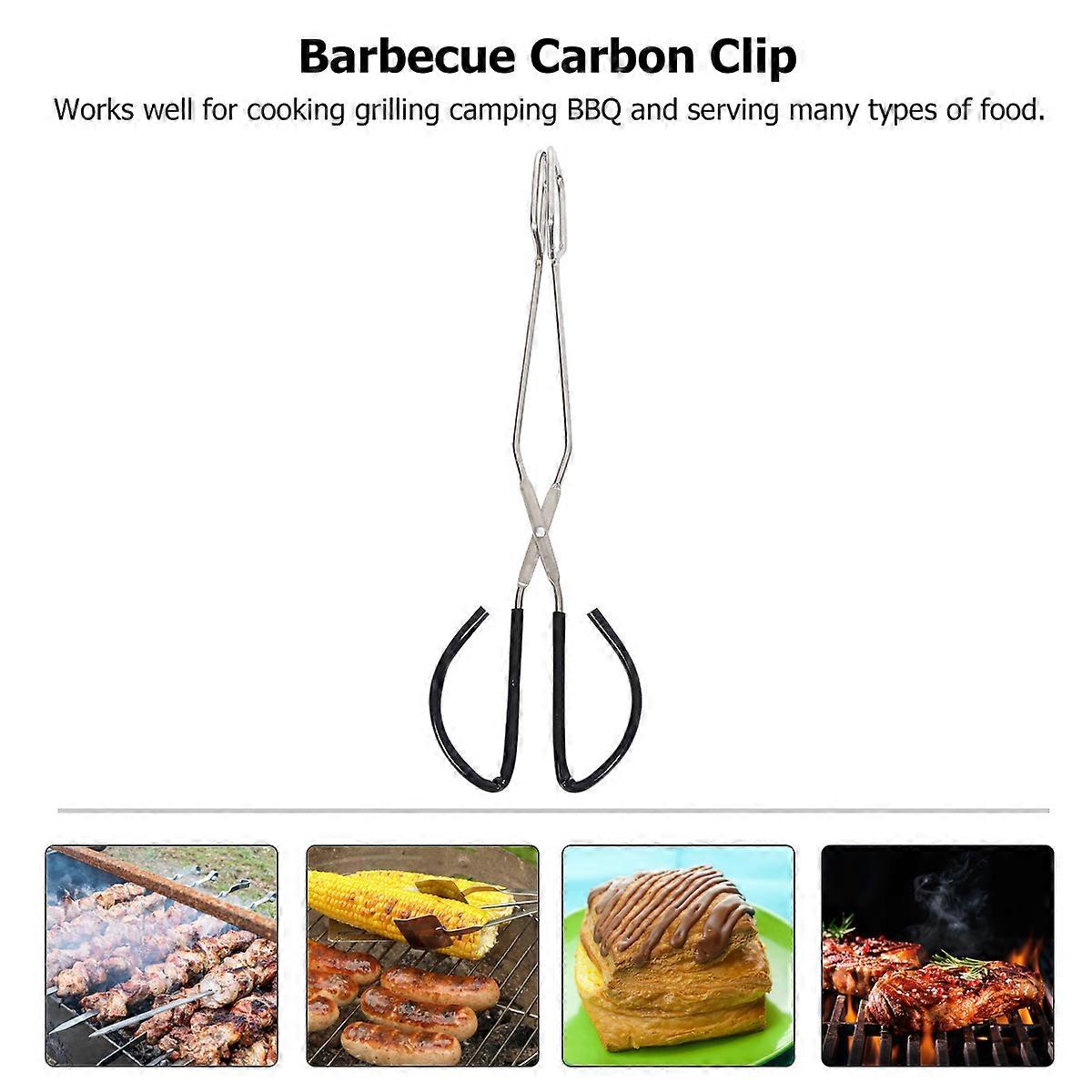 Long Handle Tongs Stainless Steel Charcoal Clip for Outdoor Use 2Pcs