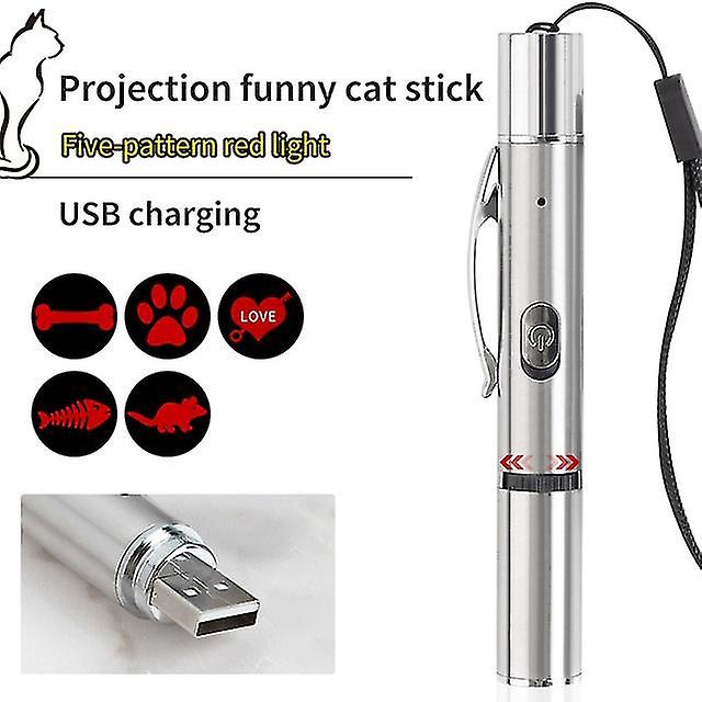 product features: 1. High-quality stainless steel shell, strong and corrosion-resistant, durable. With portable rope design, more convenient to carry2. The upgraded laser cat cat stick has five different patterns, which is more interesting.3. Adopt integrated USB charging method, charging is more convenient.4. Use this cat cat pen to interact with cats, which can increase the vitality of pets and enhance feelings. Product parameters: Product name: Laser projection funny cat stickProduct material: metal + electronic componentsProduct size: about 12*1.6*1.6CMProduct weight: about 22.4gRated input: 5V/500mhaProduct color: silver packing list: 1*Laser funny cat stick 1*lanyard