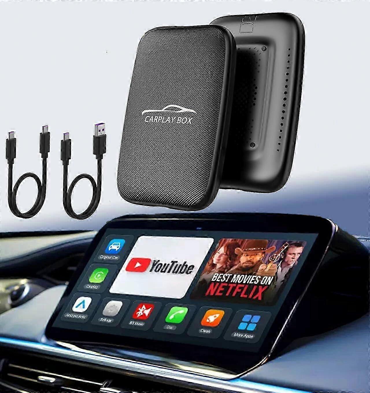 Latest 2025 Model Wireless Carplay Adapter with Netflix & Youtube Ai Box for iPhone and Android Devices - TF Card Dongle Plug Compatible