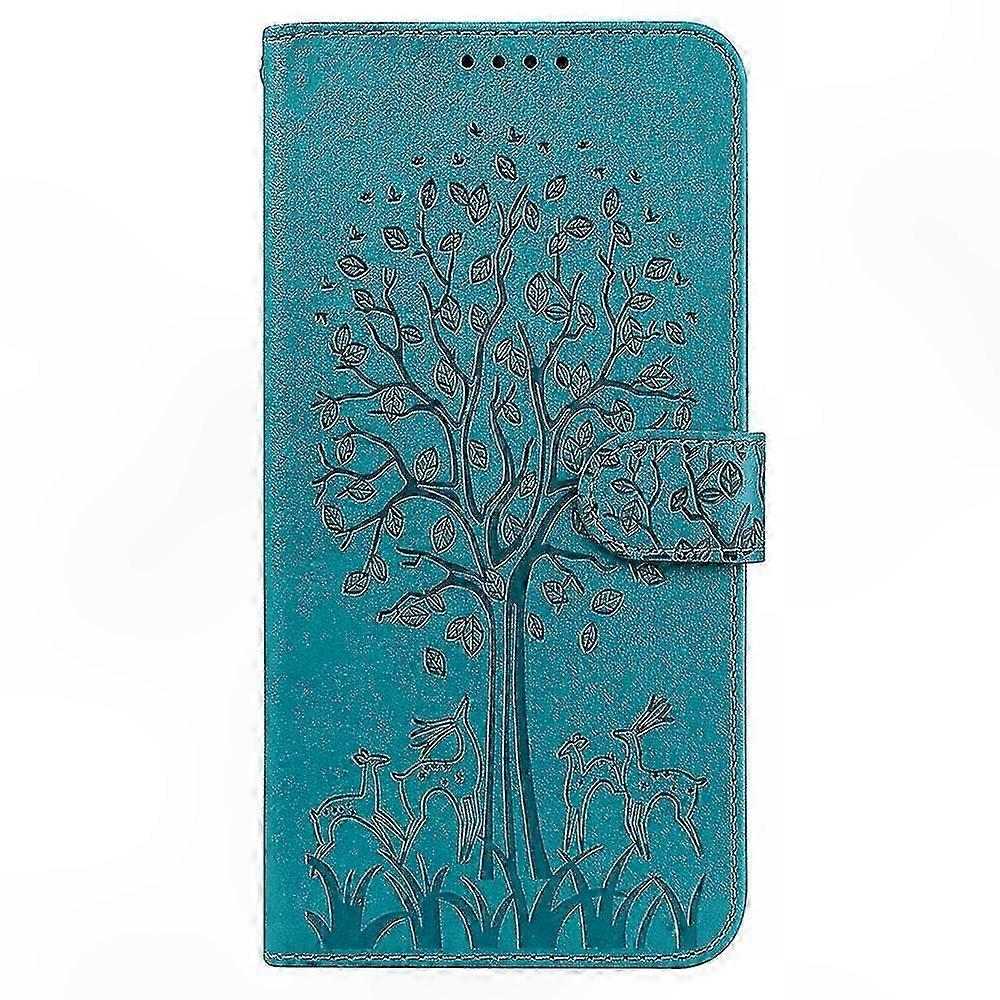 Leather Case Compatible with 11 Inch Device - Blue Tree and Deer Design