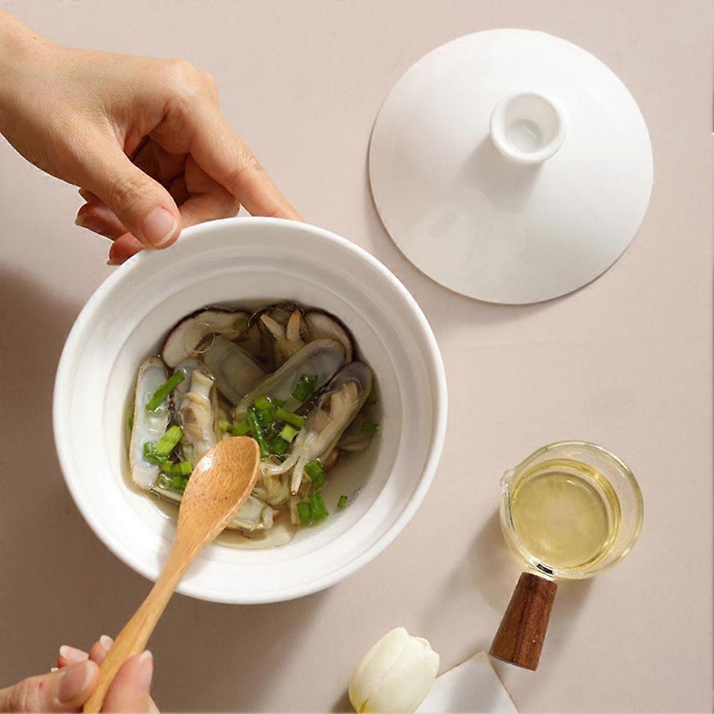 Small Ceramic Stew Pot Steamed Egg Bowl with Lid Steaming Cup Steam Soup Bowl