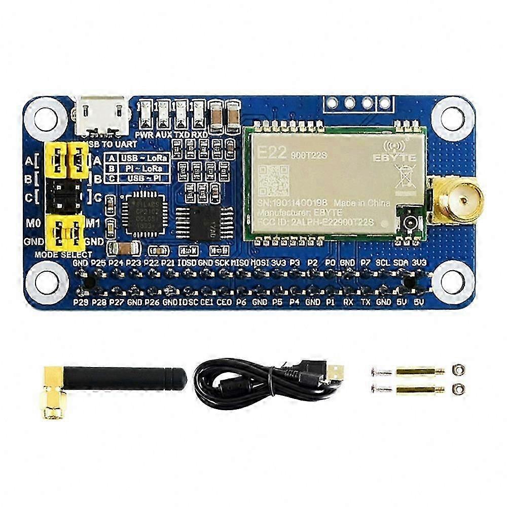 Onboard Raspberry Pi 40-pin GPIO interface, compatible with Raspberry Pi series motherboards Onboard CP2102 USB-to-UART chip for serial debugging UART control interface exported for easy connection to microcontrollers such as Arduino or STM32 Onboard 4 LED indicators for module status monitoring Uses LoRa spread spectrum technology with up to 81 selectable channels, extended communication range, and strong anti-interference capability RF chip: SX1262 / SX1268 Operating frequency bands: 850.125–930.125 MHz / 410.125–493.125 MHz Compatible antennas: 915 MHz (2 dBi), 868 MHz (2 dBi), 433 MHz (2 dBi), 470 MHz (2 dBi) Air data rate: 0.3 kbps – 62.5 kbps (programmable) Output power: 22.0 dBm (10 / 13 / 17 / 22 dBm programmable) Receiver sensitivity: -147 dBm (at 2.4 kbps air data rate) Module power consumption:  Transmit current: 133 mA (peak) / 110 mA (typical peak)  Receive current: 11 mA  Sleep current: 2 µA (LoRa module software shutdown) Communication interface: UART (TTL level) Baud rate range: 1200 bps – 115200 bps (default: 9600 bps) Packet length: 240 bytes (programmable options: 32 / 64 / 128 / 240 bytes) Buffer capacity: 1000 bytes Measured communication distance: up to 5 km (tested in open, unobstructed environment, 2.5 m above ground, 5 dBi antenna gain, 2.4 kbps air data rate) Supply voltage: 5 V Logic level: 3.3 V / 5 V compatible Operating temperature: -40°C to +85°C Color: Blue Material: PCB Dimensions: 65 × 30.5 mm Package Contents: - 1 × SX1262 915 MHz LoRa HAT - 1 × USB Type-A to Micro-USB cable - 1 × 915 MHz antenna - 1 × Screw package - 1 × SX1268 433 MHz LoRa HAT - 1 × USB Type-A to Micro-USB cable - 1 × 433 MHz antenna - 1 × Screw package - 1 × SX1268 470 MHz LoRa HAT - 1 × USB Type-A to Micro-USB cable - 1 × 470 MHz antenna - 1 × Screw package - 1 × SX1262 868 MHz LoRa HAT - 1 × USB Type-A to Micro-USB cable - 1 × 868 MHz antenna This listing includes only the items listed above. Additional accessories or components are not included.