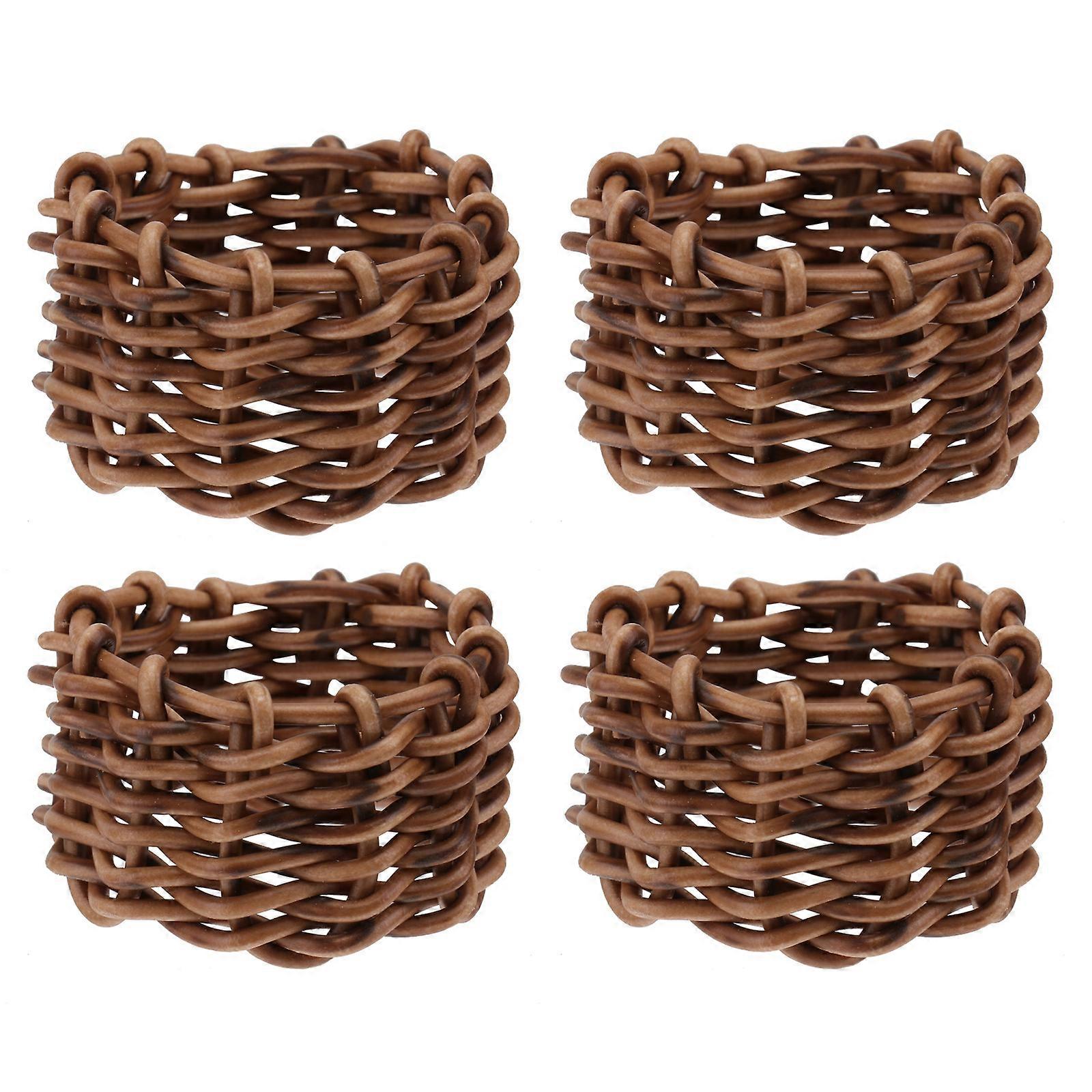 Light Brown Napkin Rings Set of 4 Decorative Woven Craft Buckles for Home 2.5 Inches