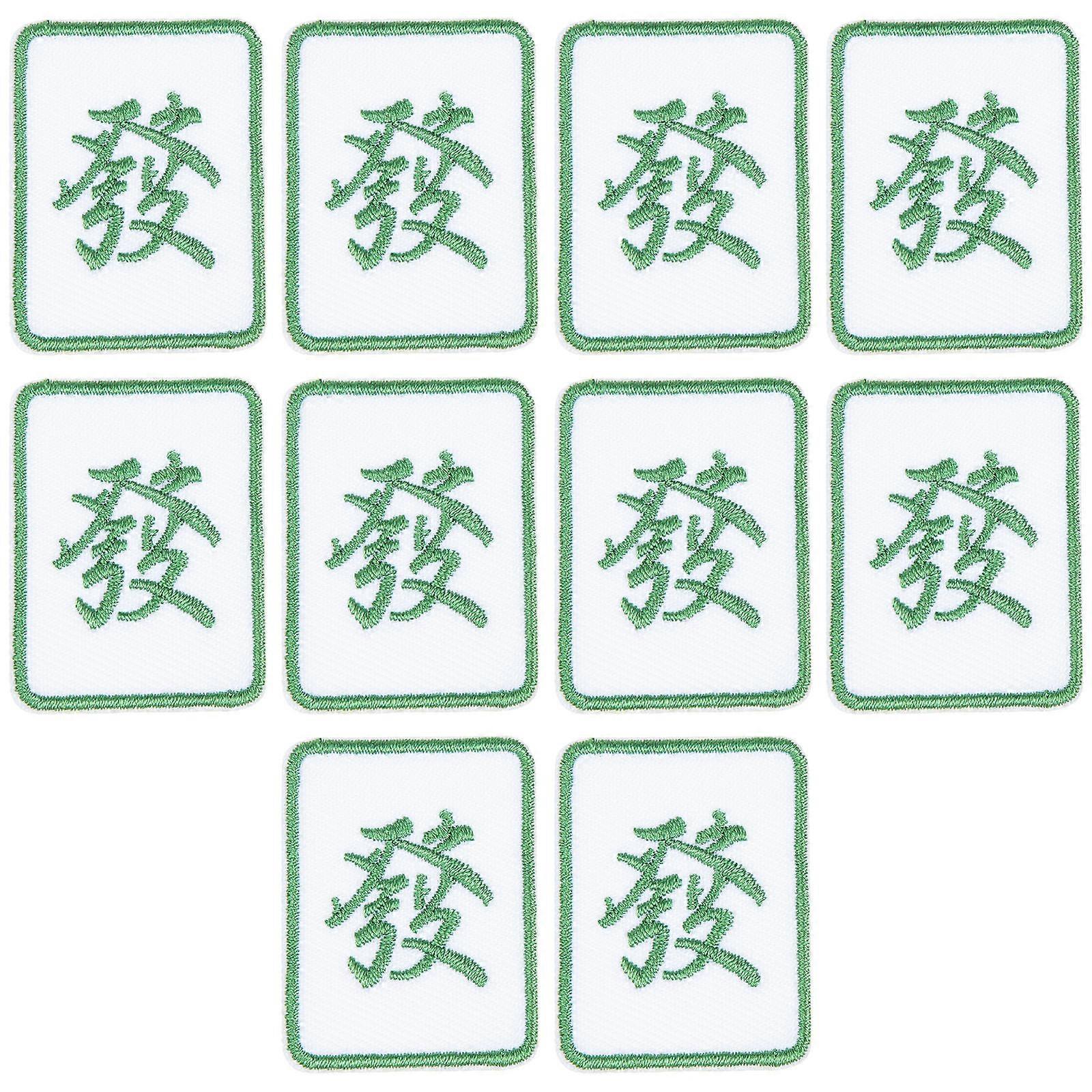 Mahjong Shaped Embroidery Patch Set For DIY Enthusiasts Green Sewn-On 10Pcs