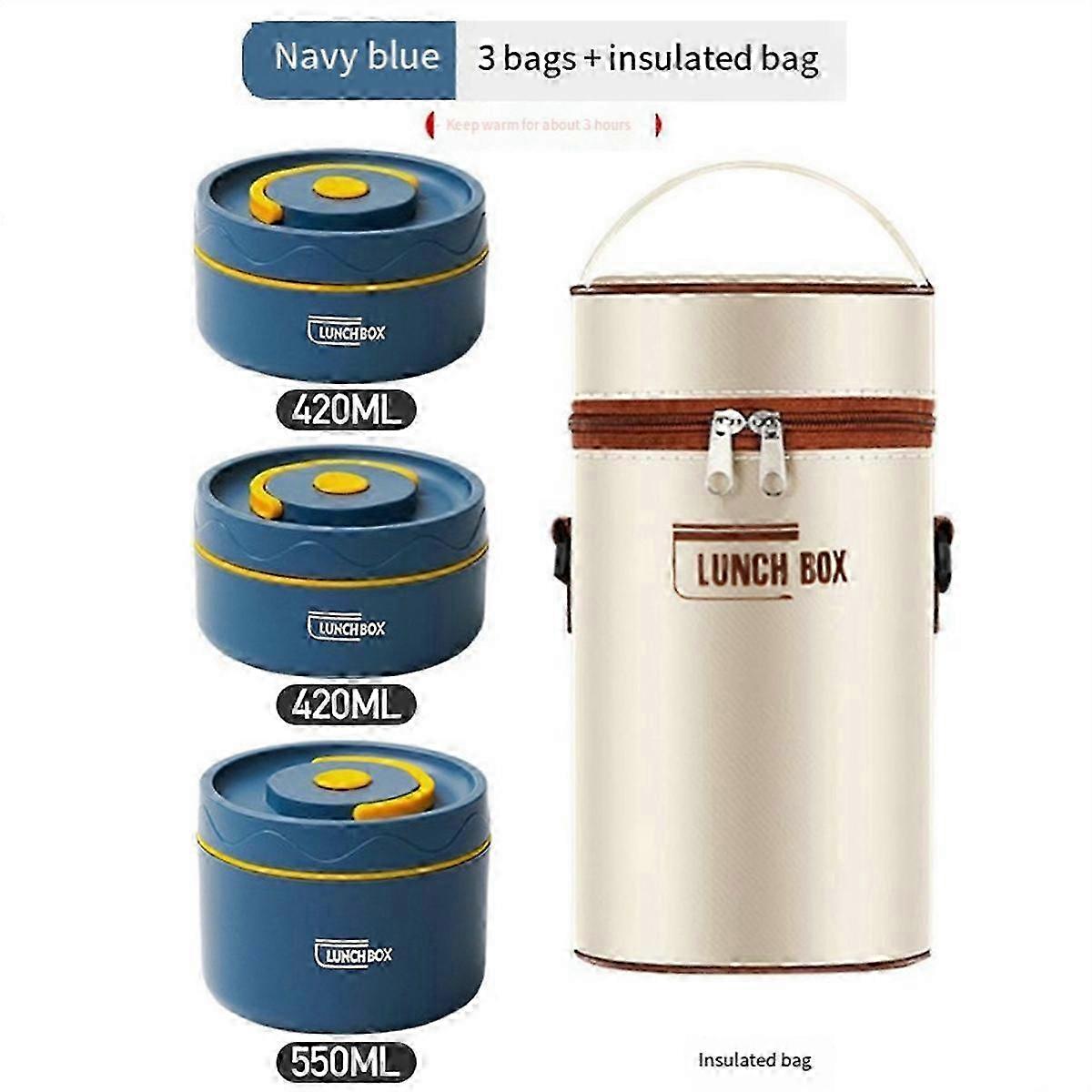 [EXCELLENT HEAT PRESERVATION] This thermal lunch container effectively maintains the temperature of the food, keeping itand flavorful. [SAFE AND RELIABLE] Made of high quality 304 stainless steel, this insulated lunch box is safe for food and meet safety standards. [LEAKPROOF DESIGN] The lid sealing design prevents spillage and leakage, ensuring the flavor and nutrients of your food are preserved. [WIDE APPLICATION] This insulated lunch box has a wide range of applications and is for work, school, and outings, this insulated lunch box is suitable for situations. [ AND PORTABLE] With its round design, this lunch box is easy to carry and for on-the-go . Colour:blue Material:Stainless steel Size: B: 420ml+550ml about 11.5 x 22.5cm Package Contents: 2 x 420ml Food Warm Container 1 x 550ml Food Warm Container 1 x Thermal insulation bag Only the above package content, other products are not included. Note: Light reflection and different displays may cause the color of the item in the picture a little different from the real thing. The measurement allowed error is +/- 1-3cm.