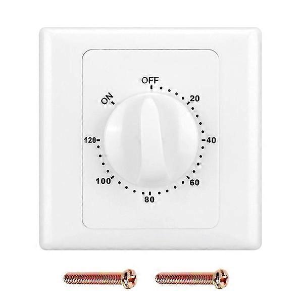 Features: Made of high-quality plastic shell and highly conductive copper material inside, ensuring good performance and durability. Programmable countdown timer. The timer can make electrical appliances work for the set time and turn off automatically. The timer interval can be controlled with the knob on the switch, making it very easy to set. Wall-mounted design, suitable for fans, water heaters, pumps, routers, aquariums, lamps, and other electrical appliances. Specifications: Material: ABS Model: 15 Minutes Without Light / 15 Minutes With Light / 30 Minutes Without Light / 30 Minutes With Light / 60 Minutes Without Light / 60 Minutes With Light / 120 Minutes Without Light / 120 Minutes With Light Size: As Shown In The Picture Conductive Material: Highly Conductive Copper Model: 86 Panel Rated Current: 10 A Note: Please allow 1-2cm error due to manual measurement. Please make sure you do not mind before you bid. Due to the difference between different monitors, the picture may not reflect the actual color of the item. Package Includes: 1x Timer with Bottom Box 2x Screws