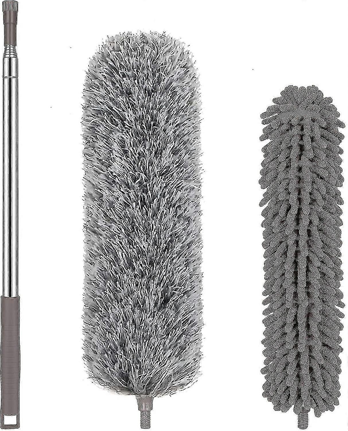 Microfiber Duster With Extension (30-100 Inch) Retractable Duster For Tall Ceiling Fan, Washable And Flexible Long Spider Web Duster For Cleaning High