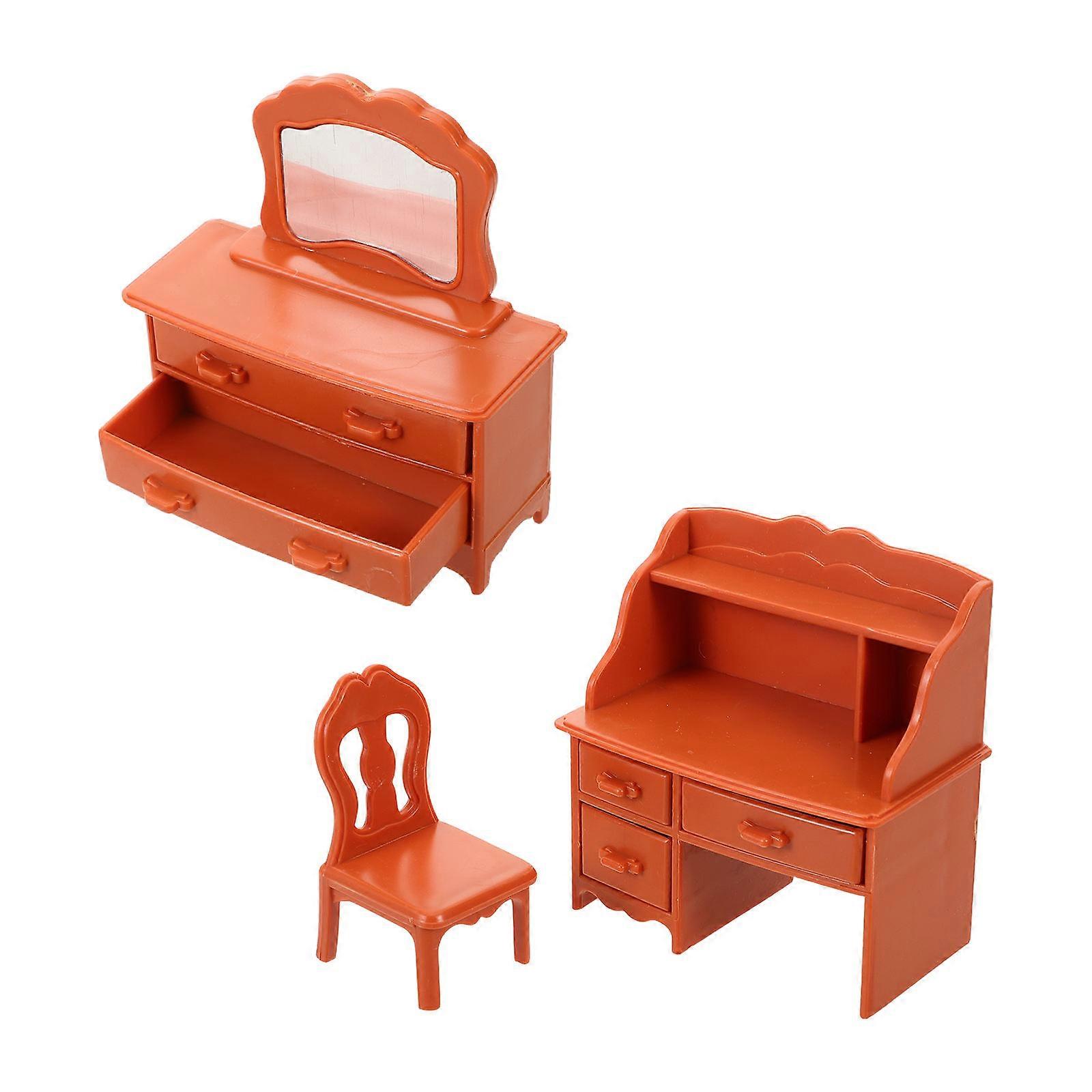 Miniature Dollhouse Vanity Table for Decorating 4Sets with Mirror and Stool