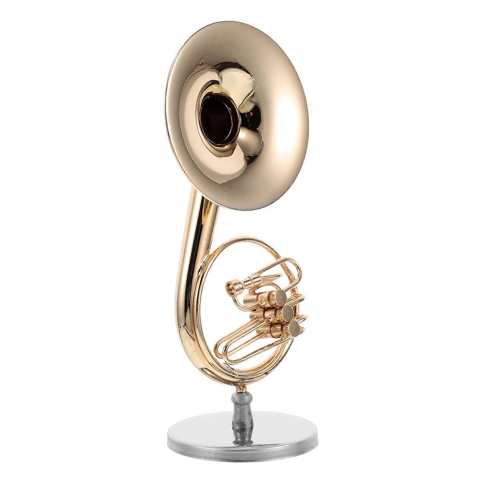 Miniature Brass French Horn Instrument Model for Decor 2Pcs