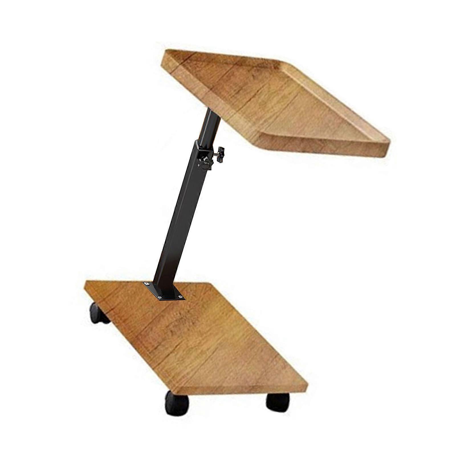 Multipurpose Side Table with Wheels Height adjustment Wood Table Rolling End Table for Sofa or Bedside Convenience Wood color