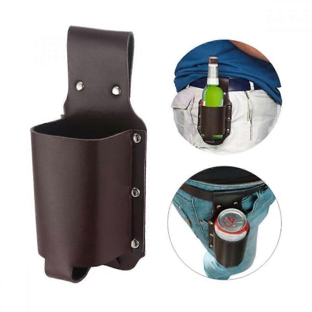 Belt holster for cans or bottles Busy grilling? Hang your beer in this beer holster! Material: leather Size: 8.5*10 cm Belt not included.
