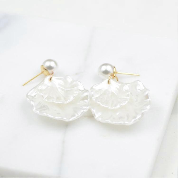 Mother of Pearl Double Carve Shell Leaf Dangle Hook Earrings White