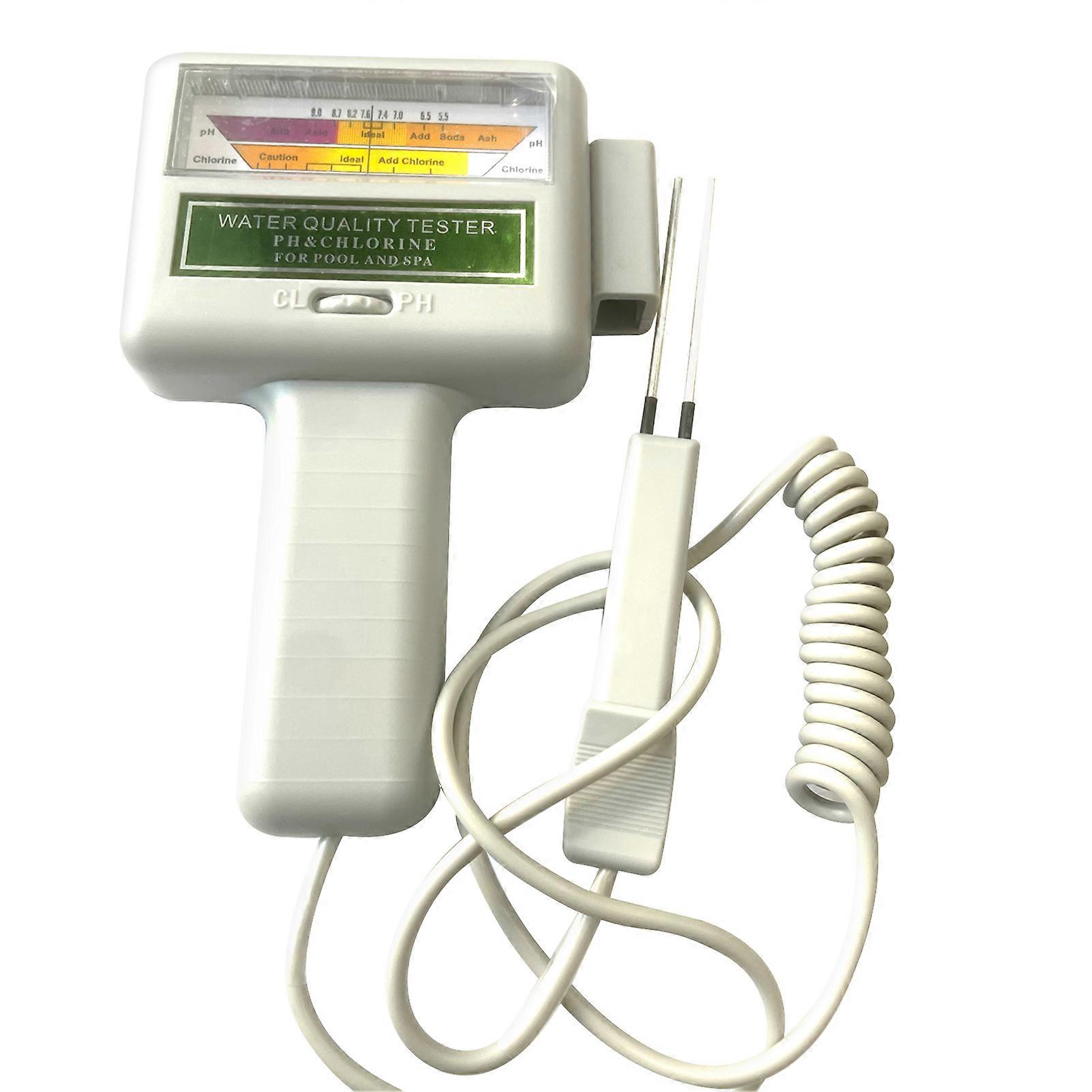 Features:High-Quality Material: Made of high-quality material, wear-resistant and sturdy, not easy to break, and can be used for a long time.Precise Measurement: Can detect water pH and chlorine levels in swimming pools and spas.Easy to use: This water quality tester features a simple and intuitive interface with an easy-to-read digital display or color-coded indicator, making it suitable for professionals and beginners alike.Portable Design: The compact and lightweight design is easy to carry and ideal for testing water quality in a variety of environments including homes, laboratories, aquariums, and outdoor environments.MULTIPURPOSE FUNCTIONALITY: Versatile enough to test the quality of drinking water, aquarium water, hydroponic solutions, swimming pools, spas and more, providing comprehensive water quality analysis.Notice:1.Actual color may be slightly different from the image due to different light effect2.Please allow 1-3cm deviation due to manual measurementDescription:Material: Plastic + MetalSize: about 18*11.6*3.1cmPower Supply: 1*1.5V AA Batteries (not included)Recommended chlorine level for pools and spas: 1.2 ~ 1.7ppmRecommended pH level for pools and spas: 7.2 ~ 7.8pHAttention:Please don't immerse the probe in any liquid other than pool or spa water.Please rotate the switch to close position when not in use.Please store the tester in cool and dry place.Usage:Before you use this tester for the first time, you must adjust it to match your swimming pool or spa water with the following sequence:1. Test your pool or spa water using a conventional liquid test kit2. Record the chlorine reading level as you will need.3. No adjustment is required for pH.