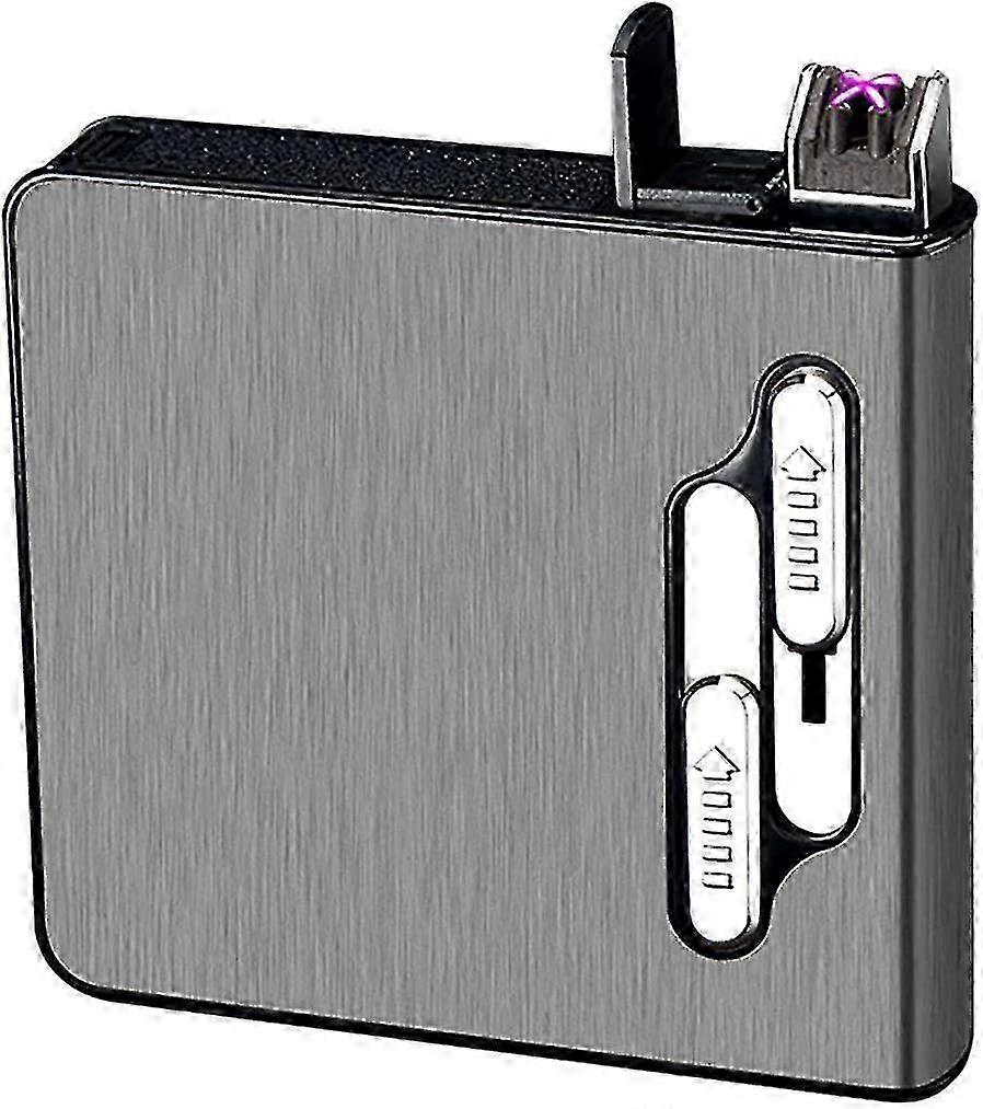 Premium Black Cigarette Case with Dual Arc Lighter & Auto Eject Feature