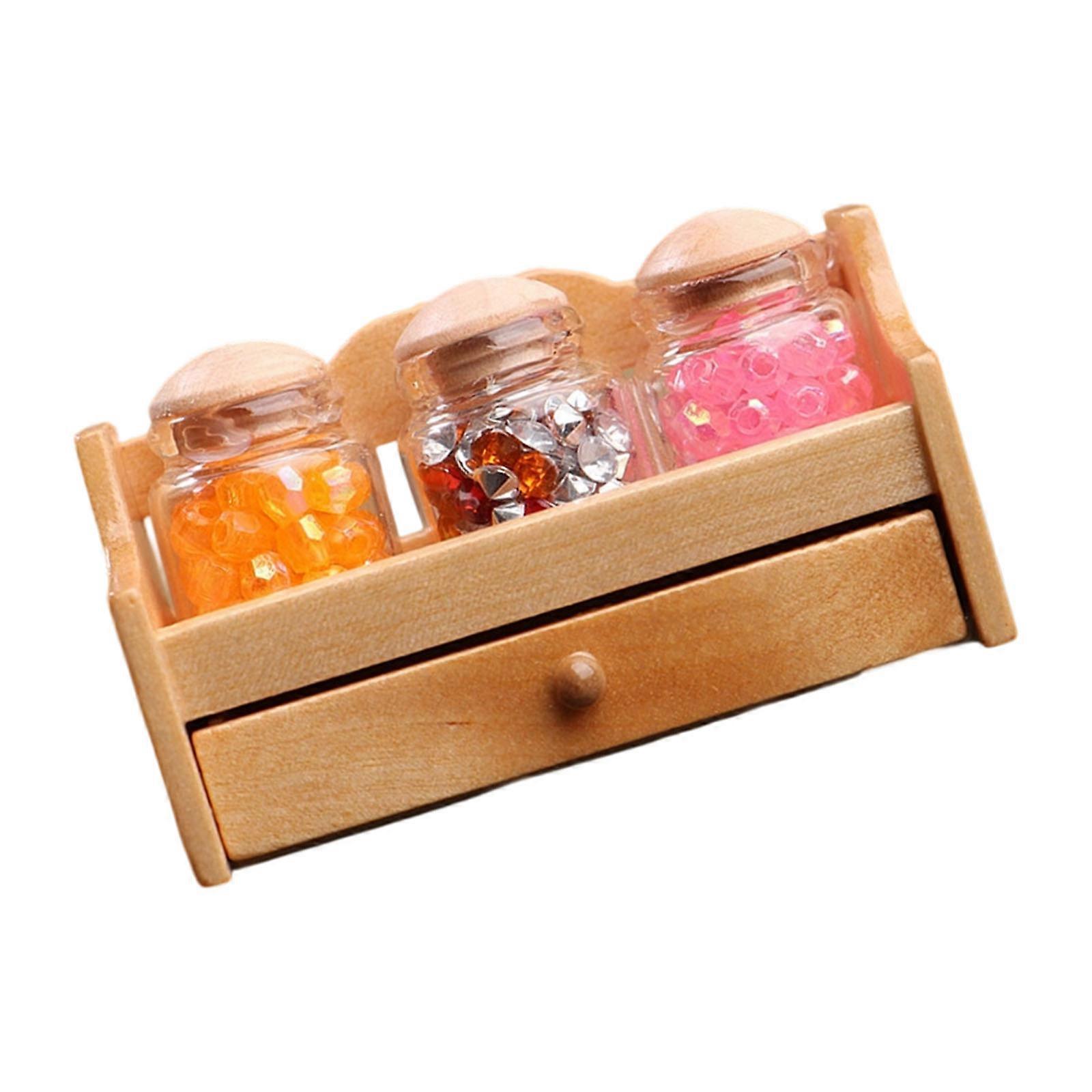 Realistic 1/12 Kitchen Shelf With Spice Bottles Craft Model Project Miniature Scene Display Decors Doll House Essential Log color