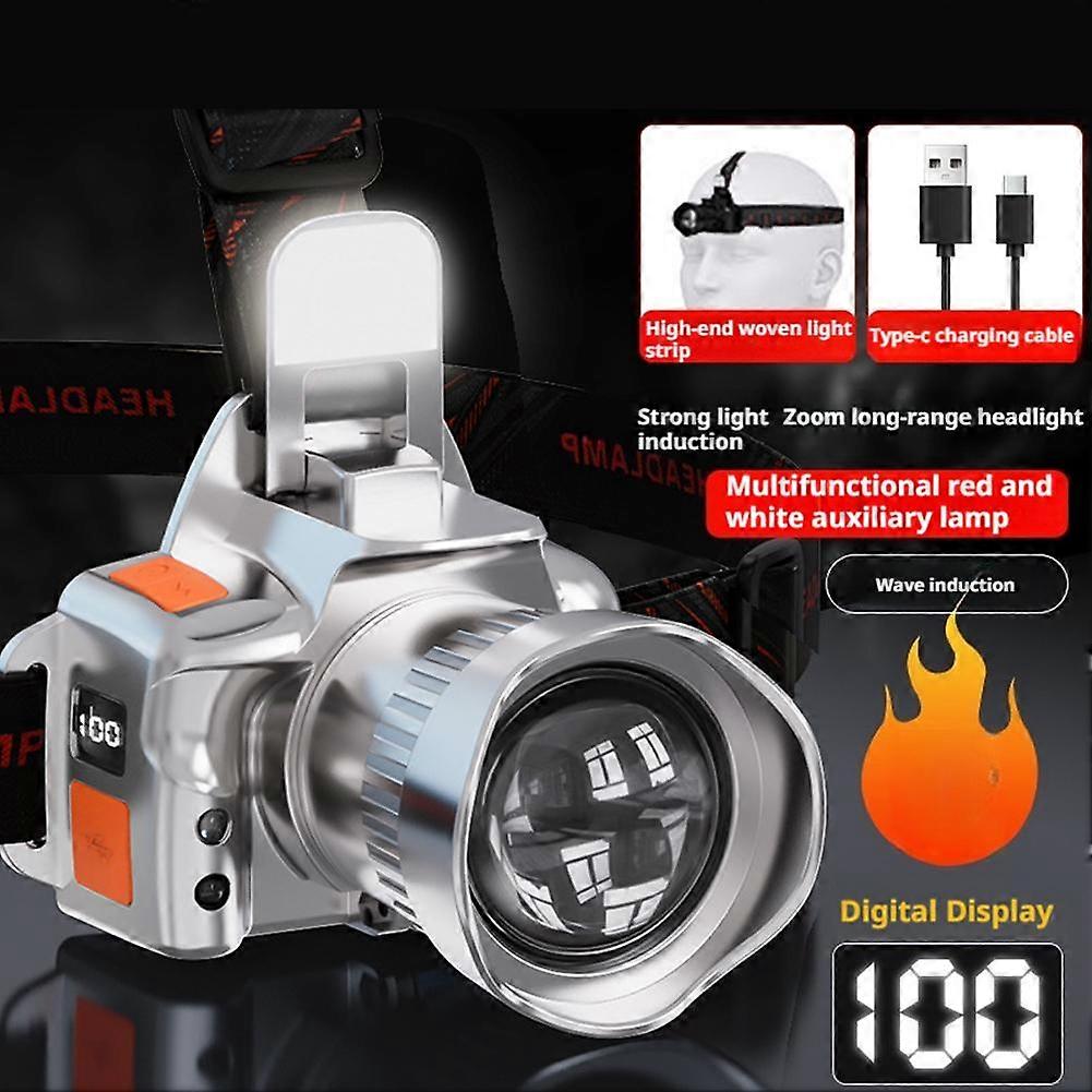 Rechargeable LED Headlamp with Digital Display Wave Sensor Zoom 1000 Lumens Waterproof for Camping Hiking Fishing
