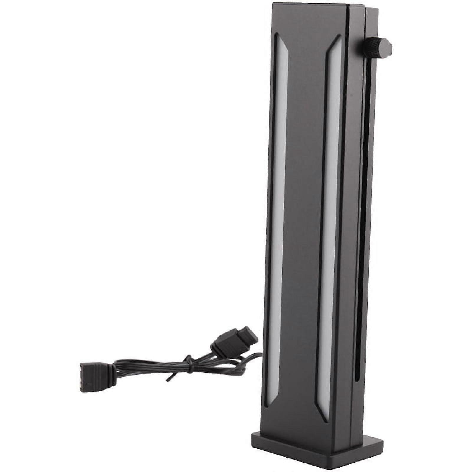 SERIAL PLUG DESIGN - 5V 3PIN male and female plug design can be connected in series with other devices Colour:Black Material:Plastic Package Contents: 1 * Graphic Card Stand Holder Only the above package content, other products are not included. Note: Light reflection and different displays may cause the color of the item in the picture a little different from the real thing. The measurement allowed error is +/- 1-3cm. MAGNETIC ANTI-SLIP BASE - The bottom of the bracket is equipped with a rubber pad with magnetism, so that you can firmly adhere to the case during installation HEIGHT ADJUSTMENT OF SLIDING SUPPORT - The bracket can slide up and down, and be fixed with screws by hand. It provides flexible support soheme and can be compatible with video cards of different heights STABLE SUPPORT - Provide stable support and protection for high-end video cards, and effectively prevent losses caused by long-term weight sinking and deformation at of video cards GORGEOUS ARGB LIGHT EFFECT - The multi-layer lighting effect at the center of the holder is designed with transparent mirror reflective patch to bring you gorgeous lighting effect! EFFECT AFTER INSTALLATION - ARGB lights are synchronized with other computer hardware lights. Make your computer a cool decorative art