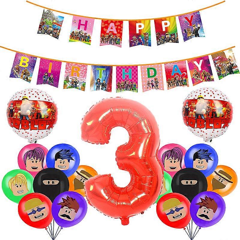 Roblox �C ensemble de vaisselle de d��coration joyeux anniversaire, assiette en papier, tasse, paille, fournitures de f��te, ballon en Latex, d