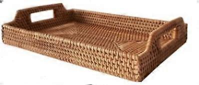 Rattan Woven Serving Trays With Handle Rectangle Handmade Woven Tray Snack Plate Rattan Woven Basket Fruit Snack Display Tray|Storage Trays(S) Size: Small approximately 34*24*5 List: Woven tray*1