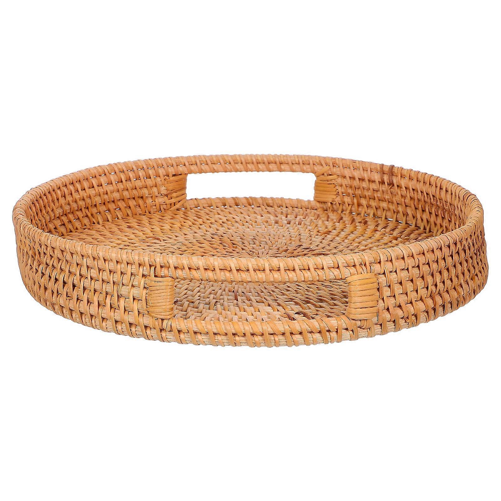 Round Rattan Tray for Serving Fruits and Snacks 2Pcs Handwoven Tray