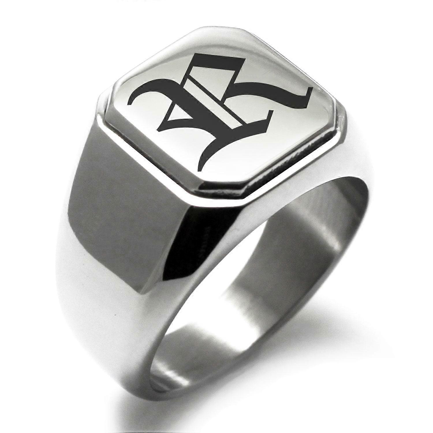 Stainless Steel Letter R Initial Old English Monogram Engraved Engraved Square Flat Top Biker Style Polished Signet Ring