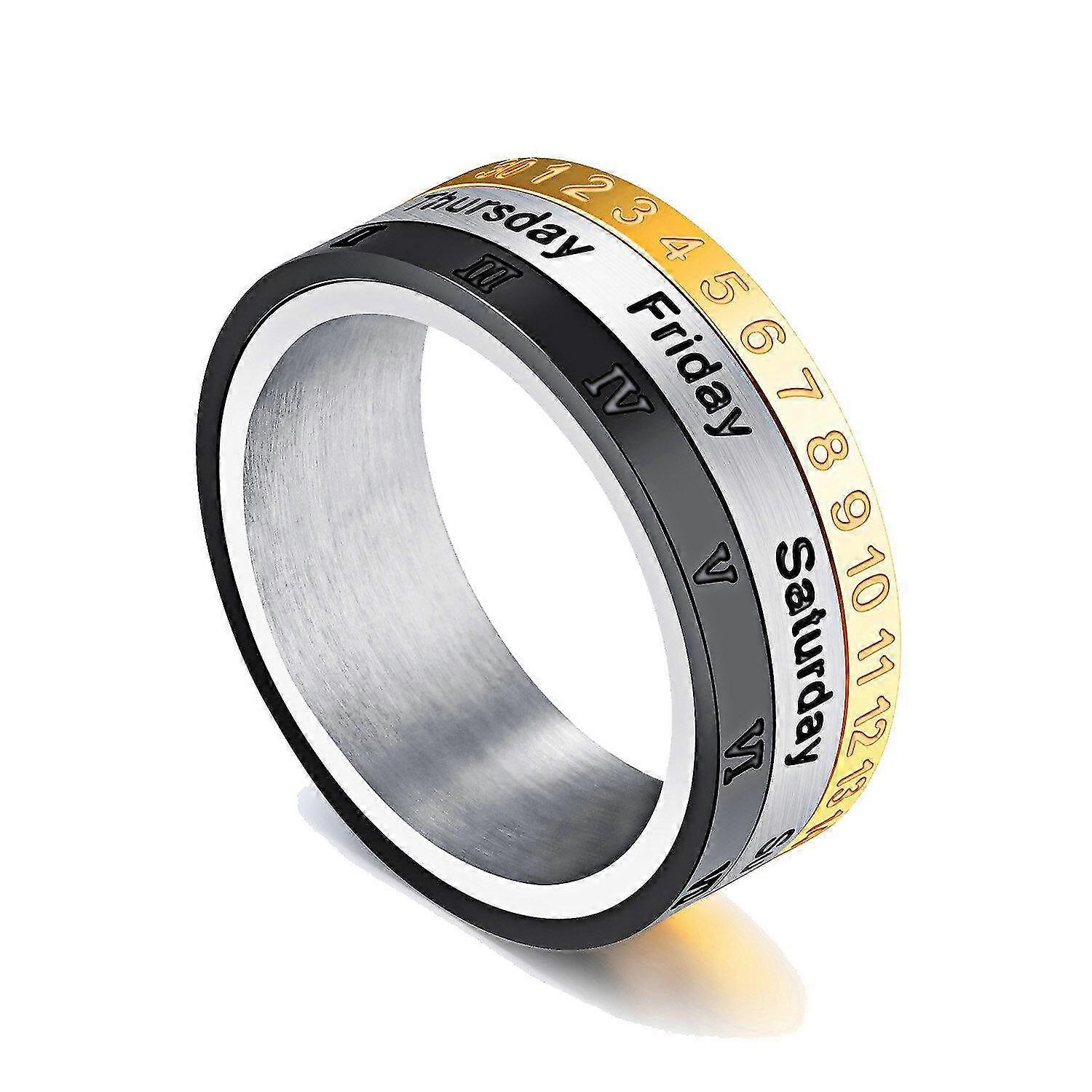 stainless steel roman numerals week calendar three-tone ring black