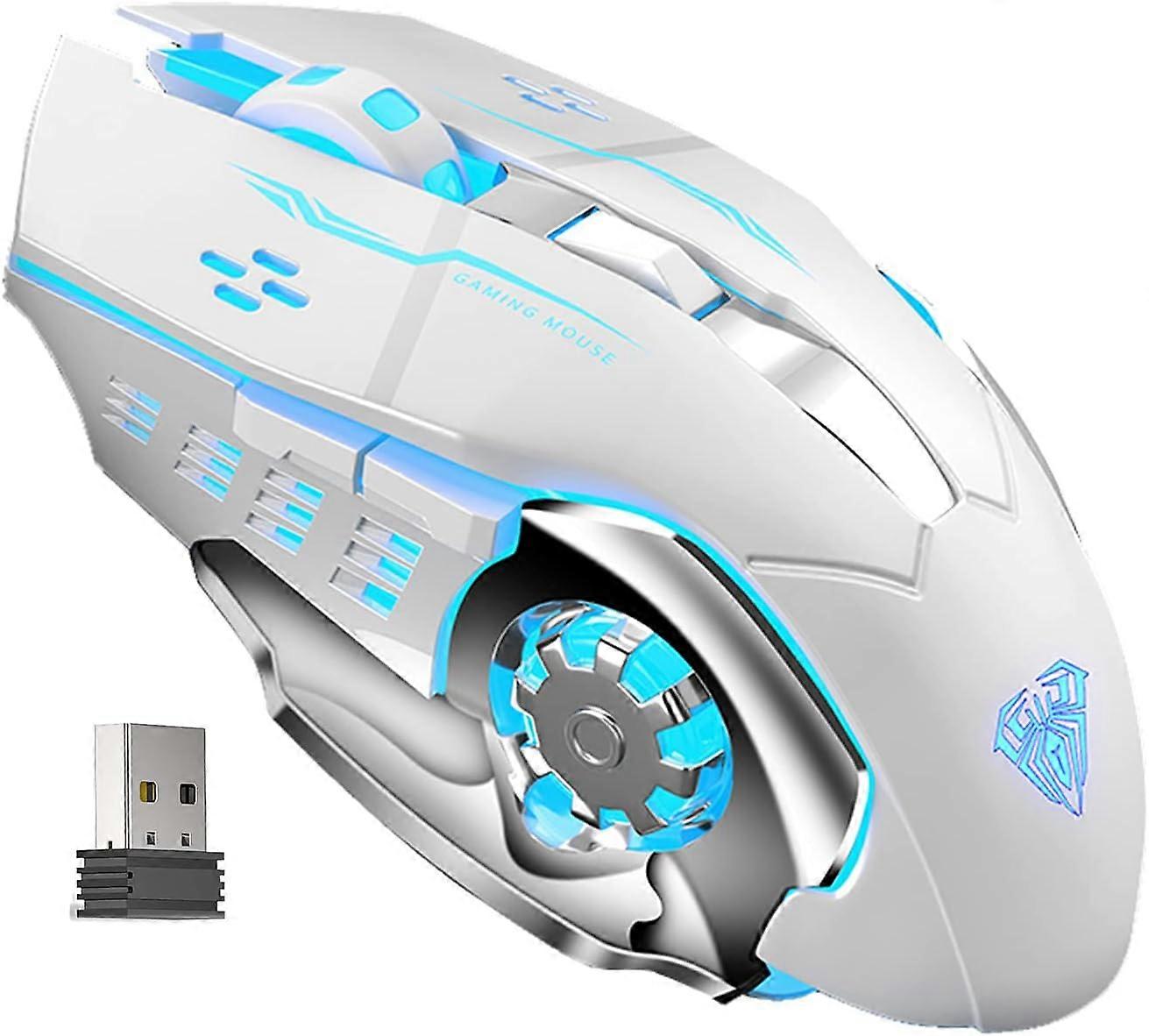 SC100 Silent White Wireless Mouse Rechargeable, RGB LED Backlit, DPI Adjustable, 2.4G Wireless Optical Computer Gaming Mice with USB Receiver, Punk Co