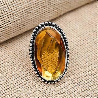Citrin Ring, Sølv Smykker, Edelstensring, Statement Smykker, Håndlaget Ring