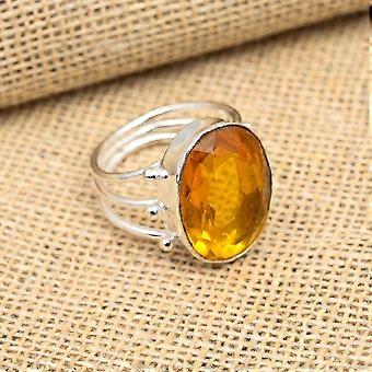 Faceted Citrine 925 Sterling Silver Handmade Gemstone Ring Memorial Gift For Her