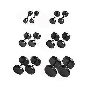 6 par svarte øredobber, ørepropper i rustfritt stål, skruedobber, øredobber, sett for menn og kvinner, tilbehør