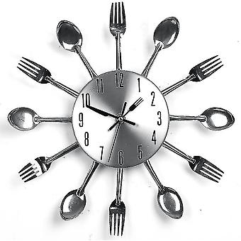 Rustfritt stål Kjøkkenredskaper Klokke For Kjøkken Innendørs Utendørs Kjøkken Bestikk Sølv Veggklokke Med Tonet Gafler Skjeer