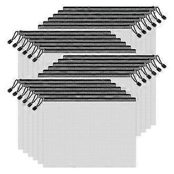 Nettingposer med glidelås, 24 gjennomsiktige glidelåslommer, A4 Letter-størrelse, oppbevaringsposer med glidelåsmappe for skole, kontorrekvisita