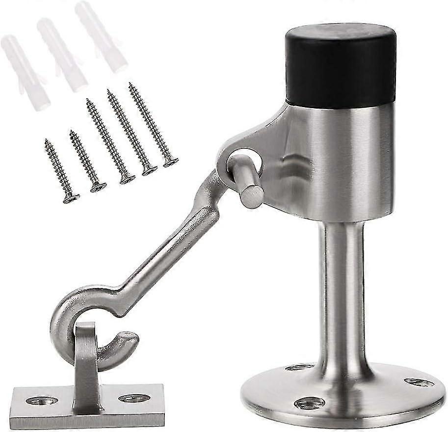 Sturdy door stopper with brushed stainless steel hook Wall mounting with rubber pad