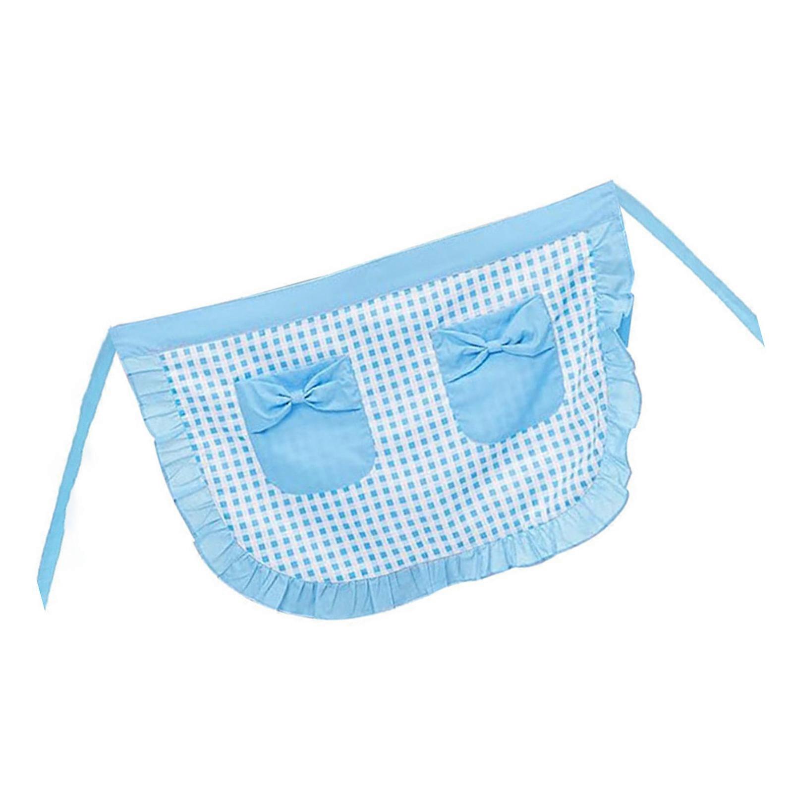 Sweet Server Aprons Waist Apron,Waitress Apron for Women Girls Bows Checked Half Apron with Adjustable Waist Straps Blue