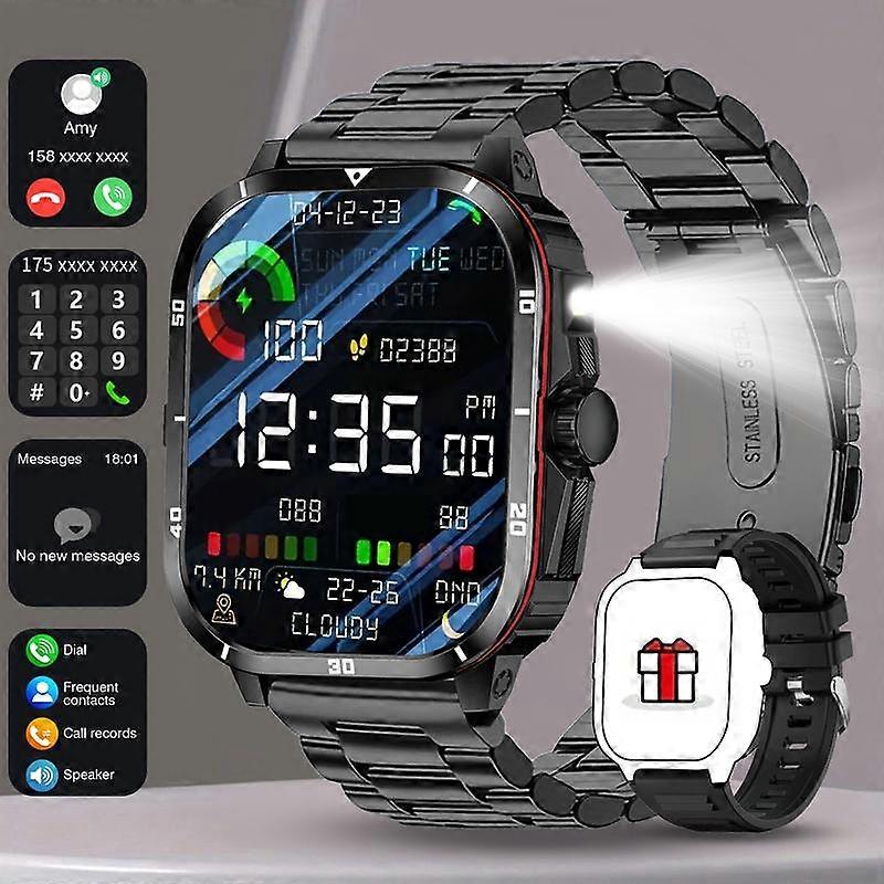 Sports Smartwatch - 1.83" Full Touchscreen, Dual Straps, LED Flashlight, Call Answering, Sleep Monitoring, Pedometer, Message Alerts. Compat