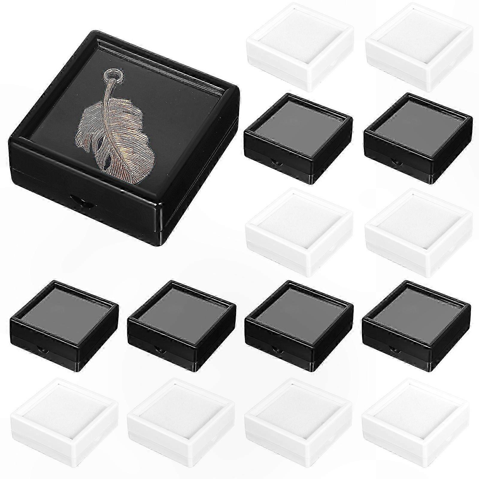 Square Display Boxes with Clear Lids and Soft Inserts for Jewelry Coins Gemstones Badges Storage Organization Set of 20 Pieces