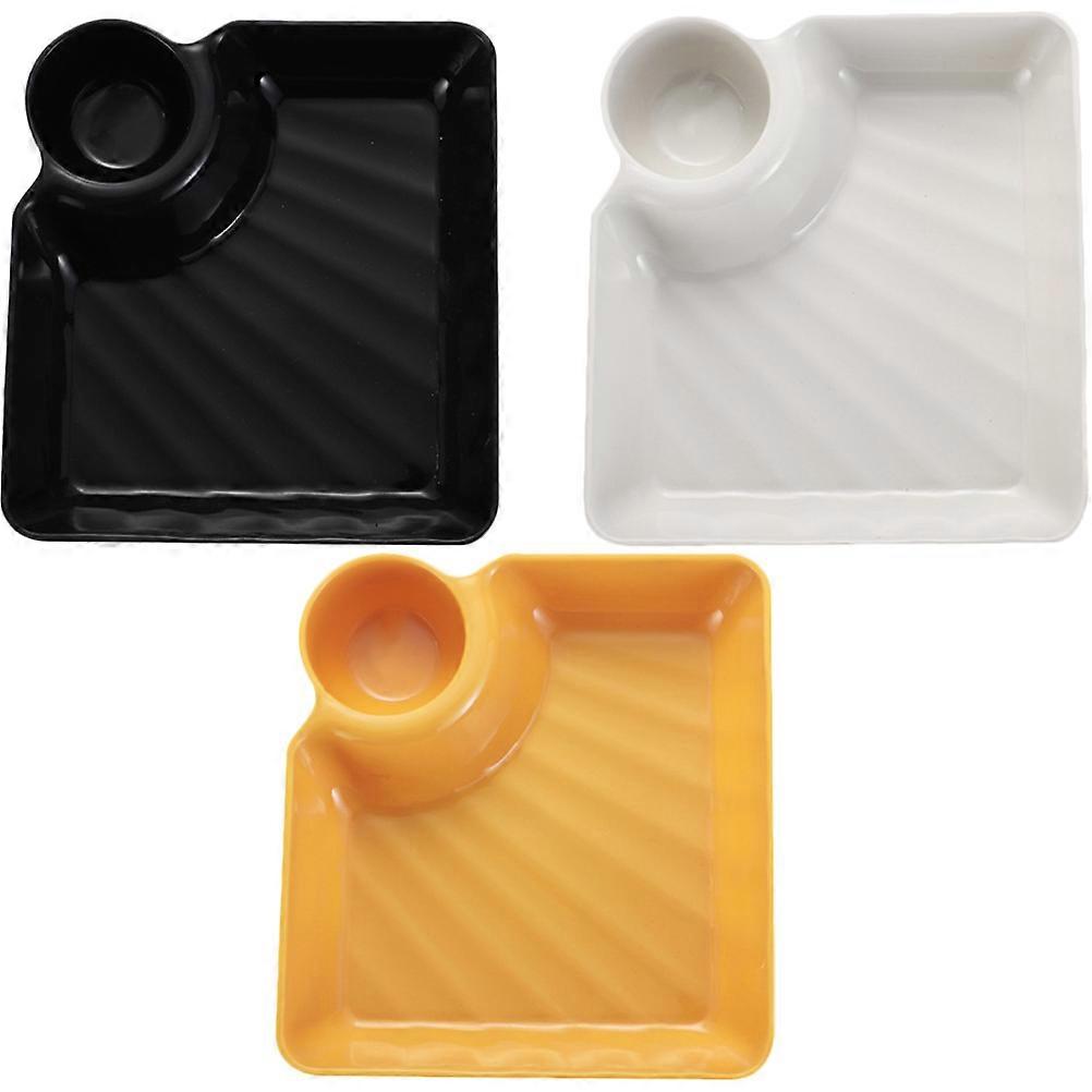 Food tray, made of materials, it has a simple structure, convenient and practical, which can provide of convenience for eating. It is made with excellent craftsmanship, , easy to clean and reusable. This is a very practical home food tray, it is a multifunctional tray with dish tray, which can meet your needs well. Features -Color: Black, White, Yellow -Material:PP -Size:18.30X16.80X4.00cm/7.19X6.60X1.57in -This Snack Tray is made of material that can be easily and safely used for eating food. -The Dessert Serving Tray has an attractive design and is lightweight, making it easy to use and carry. -The tray is easy to clean, simple and convenient to use and easy to store when you don't need to use. -A versatile tray with a special dish tray, perfect for serving noodles, dumplings snacks and other foods. -Suitable for many occasions, the tray can be decorative or practical to put food, with good texture and good workmanship. Package list: 3 x Trays
