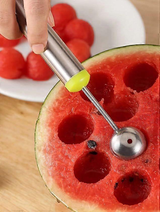 DUAL-ENDED DESIGN: Features a stainless steel construction with two different sized scooping ends for versatile fruit carving and portioningERGONOMIC GRIP: Comfortable non-slip handle ensures precise control while creating perfectly round fruit balls and garnishesVERSATILE USE: Perfect for scooping melons, watermelon, papaya, ice cream, cookie dough, and creating decorative fruit displaysDURABLE BUILD: Premium stainless steel construction resists rust and maintains sharpness for long-lasting performanceEASY CLEANING: Dishwasher-safe design allows for quick and convenient cleanup after each use