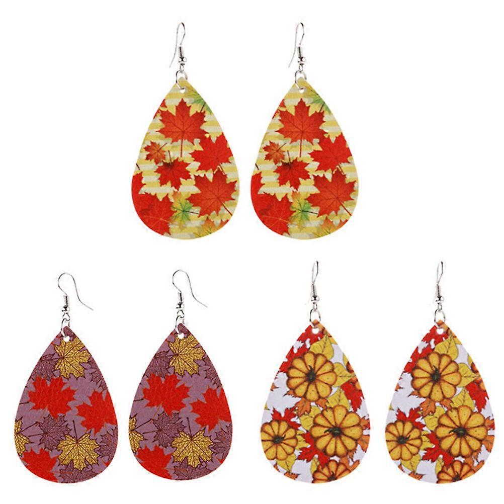 Thanksgiving Earrings Autumn Maple Leaf Pumpkin Leather Earrings (Orange Yellow)